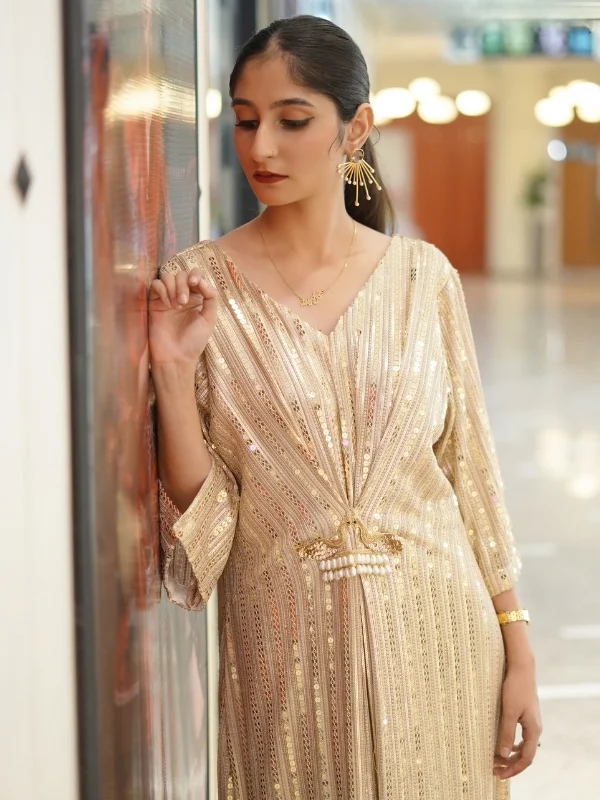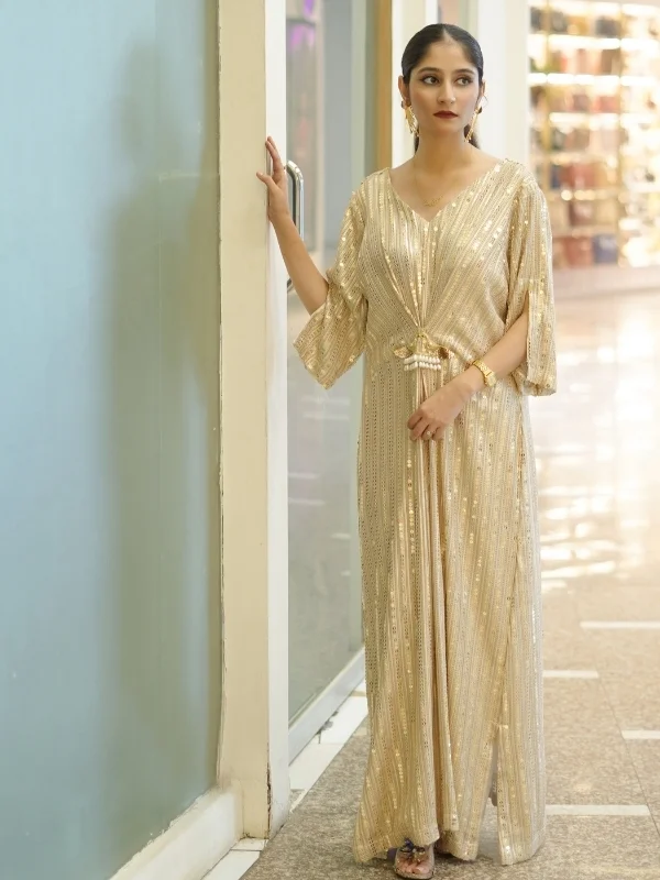 Golden Kaftan with beautiful embelishments & pattern cutting