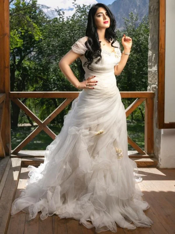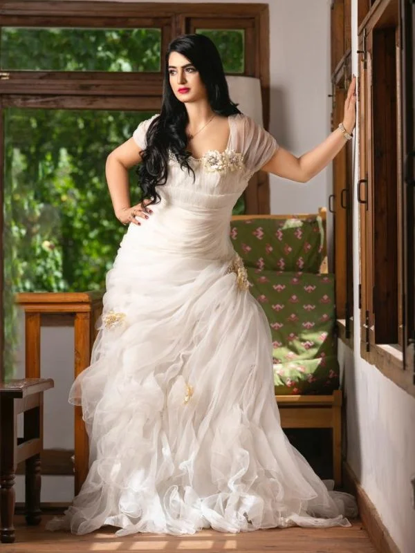 Off-white frill gown with some gold embelishments