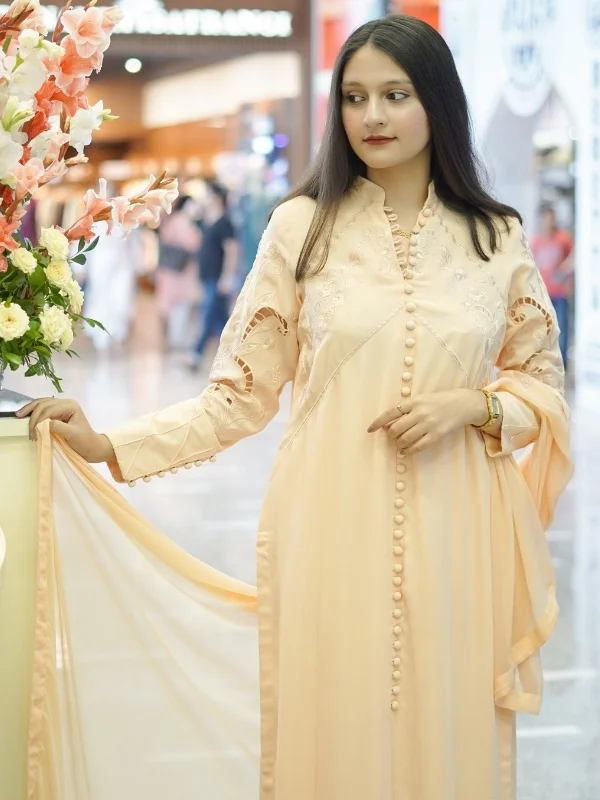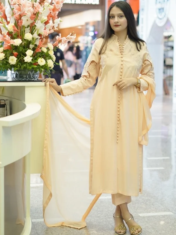 Peach Pure Crinckle Suit 3 Piece with dupatta & trouser